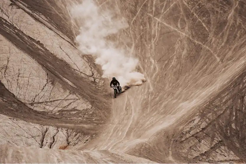 Terra is the first to blend the advantages of dural-sport motorcycles and trials bikes to keep weight down and performance up. The PRIME weighs just over 200lbs, allowing for a smooth, yet nimble rider experience on asphalt and dirt terrain.