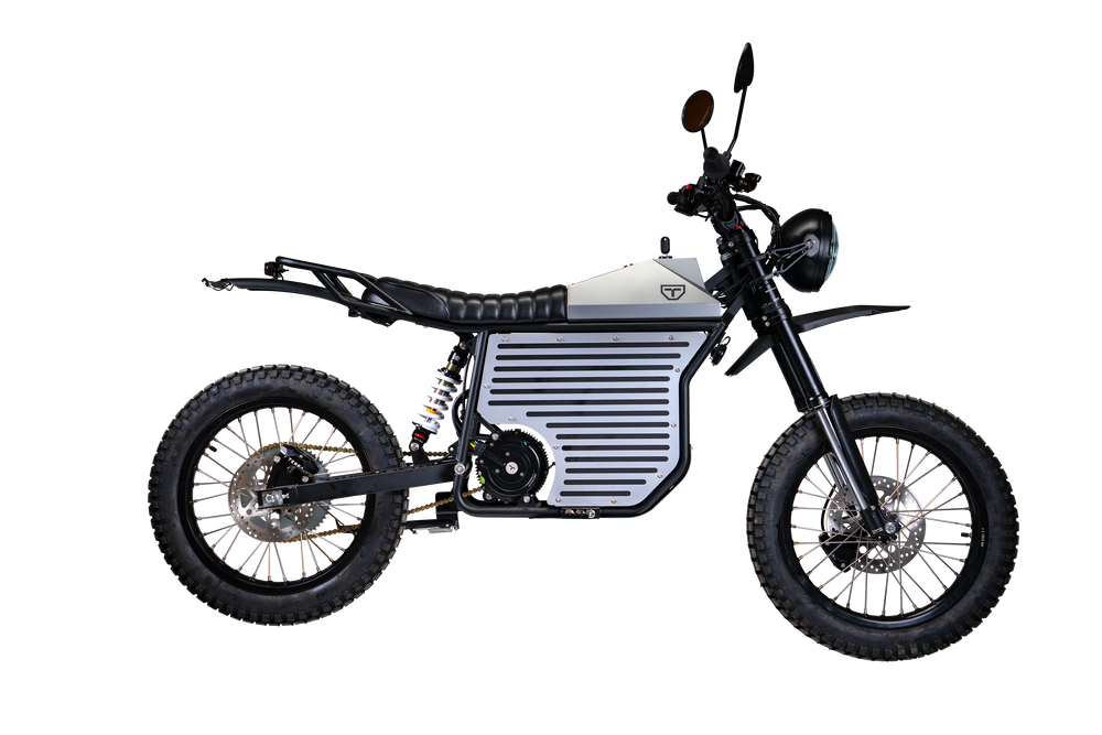TERRA is the first to blend the advantages of dural-sport motorcycles and trials bikes to keep weight down and performance up. The PRIME weighs just over 200lbs, allowing for a smooth, yet nimble rider experience on asphalt and dirt terrain.